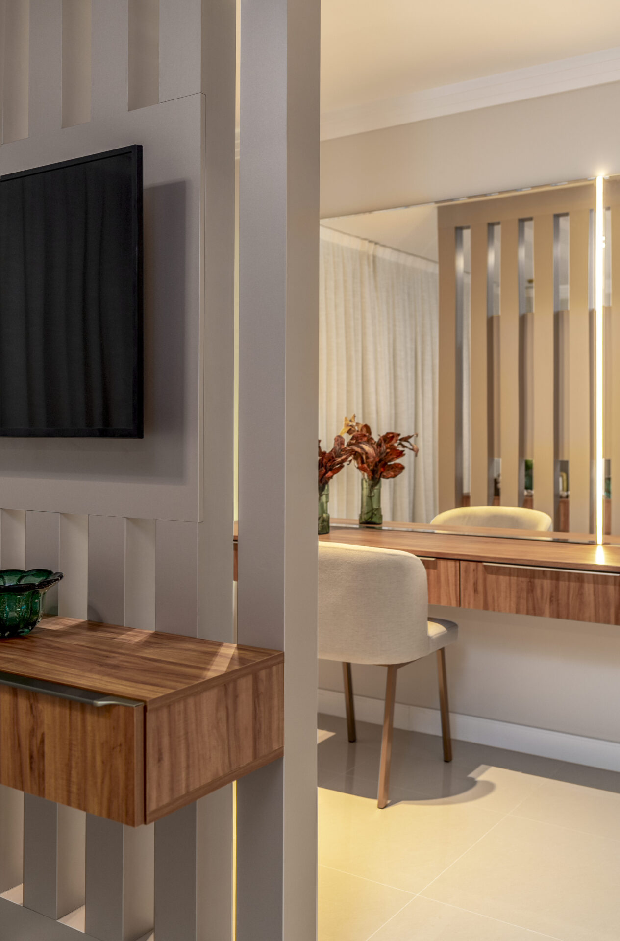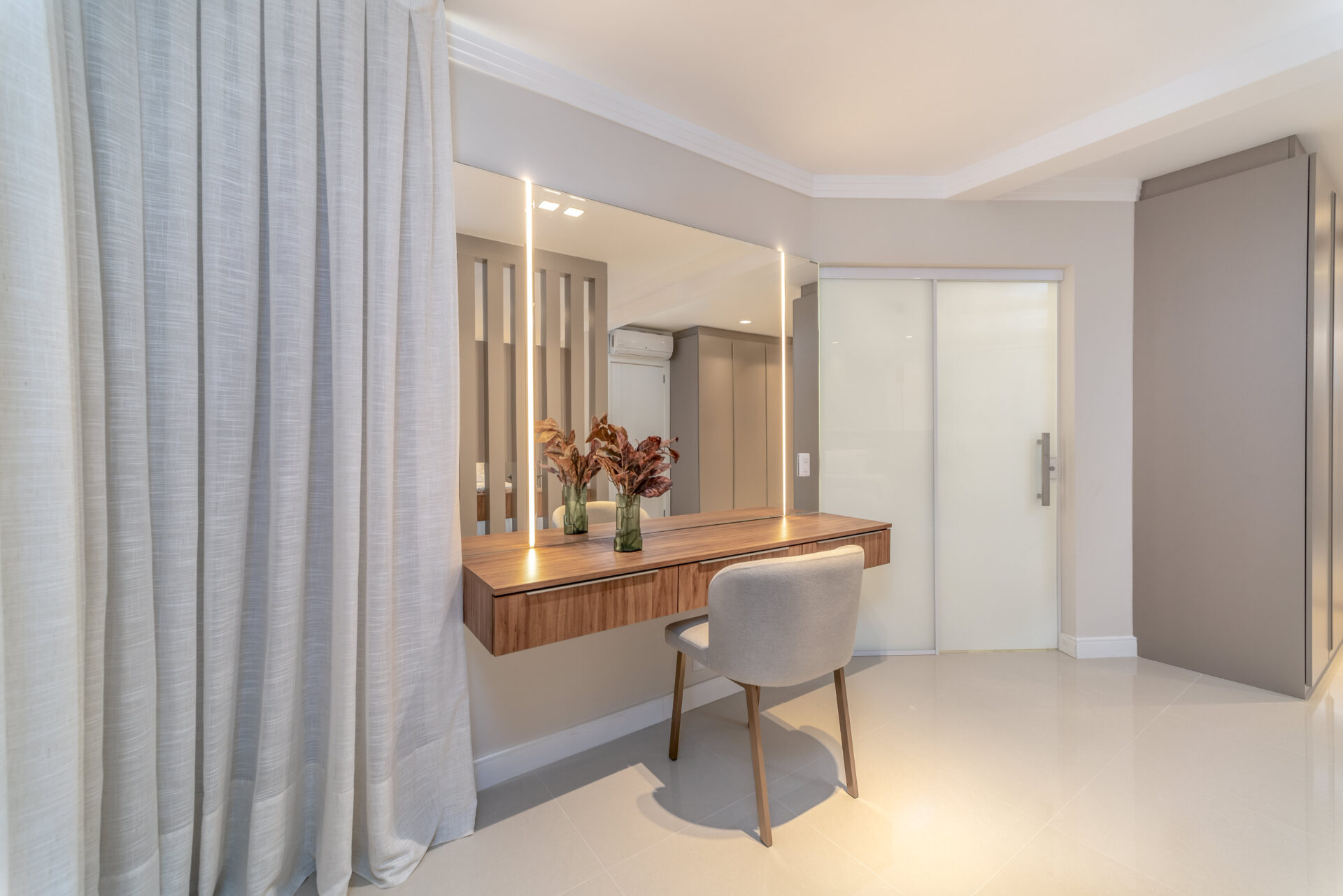 Os acabamentos reforçam o cuidado com cada detalhe. A área social possui piso em porcelanato, enquanto a área íntima recebe piso laminado de madeira, garantindo aconchego e sofisticação. O imóvel conta com rodaforro em gesso em todos os ambientes, portas laqueadas, rodapés em poliestireno e esquadrias em alumínio pintado, que agregam elegância e durabilidade. Além disso, oferece tubulação para ar-condicionado tipo split, infraestrutura para água quente e medidores individuais de gás, água e luz, proporcionando mais conforto, economia e autonomia para os moradores.
